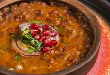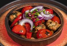 400 г • Нежные кусочки говядины тушеные с томатами, красным луком, чесноком, кинзой, петрушкой и горными грузинскими специями