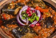 400 г • Рагу из баклажанов, помидоров и сладкого перца, обжаренных с луком и грузинскими специями